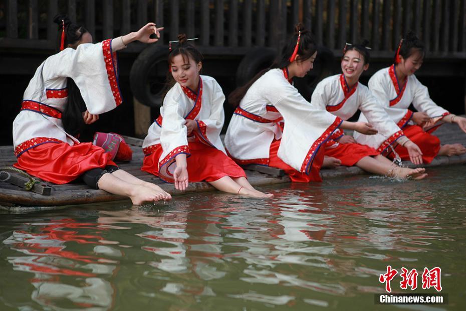 3月29日,一場重現(xiàn)中國古代春秋時期上巳節(jié)“曲水流觴、臨水浮卵、水上浮棗”風俗的活動在江蘇常州淹城春秋樂園內上演。據(jù)記載,在上述三種水上活動中,以臨水浮卵最為古老,它是將煮熟的雞蛋放在河水中,任其浮移,誰拾到誰食之。水上浮棗和曲水流觴則是由臨水浮卵演變來的。