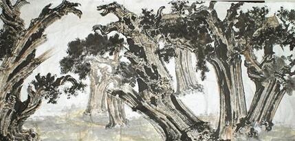 另一個他擅長的題材是古柏樹。1992年他去泰山采風(fēng)途中。山上的古柏樹生機(jī)勃發(fā),堅(jiān)韌不拔,給他帶來了一種震撼的力量。他當(dāng)時就想將這些古柏入畫,為古柏注入精神意義。從此,在孔府、孔林、古蜀道以及陜西等地都留下他觀察古柏的足跡。有評論家認(rèn)為,他的藝術(shù)作品不但在整體的構(gòu)圖上自然、清新和潤朗。而且在整體的布局上,疏密相間,虛實(shí)相融,用獨(dú)有藝術(shù)感覺構(gòu)建出了一個既蘊(yùn)含了詩情畫意,又張揚(yáng)了文化魅力和內(nèi)心情感的藝術(shù)空間。