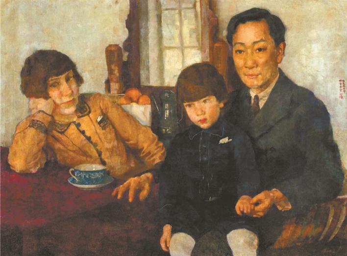 《楊仲子全家福》也是吸睛之作,它以沉靜之態(tài)吸引觀眾駐足,忍不住與畫中人對視。這是徐悲鴻的佳作,畫的是好友楊仲子一家。楊仲子是中國最早留學(xué)歐洲研習(xí)西方音樂的先驅(qū),回國后傳授西方音樂,創(chuàng)建并推進(jìn)中國音樂教育教學(xué)體制,倡導(dǎo)改進(jìn)并推動民族音樂發(fā)展。這件創(chuàng)作于1928年冬天的作品,徐悲鴻畫出了楊仲子和妻子、孩子閑適的狀態(tài)。畫中三人神態(tài)各異,在藝術(shù)家的傳情畫筆下,觀眾似能看到他們恬淡表情之后的情緒。