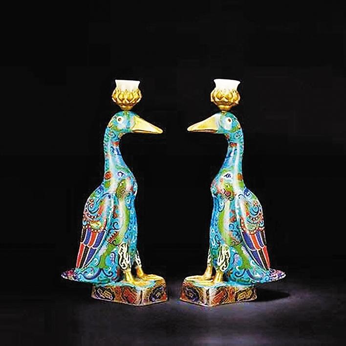 ▲清代掐絲琺瑯雁形燭臺