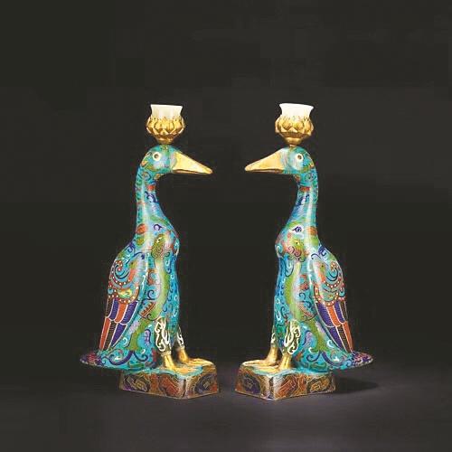 清代掐絲琺瑯雁形燭臺。