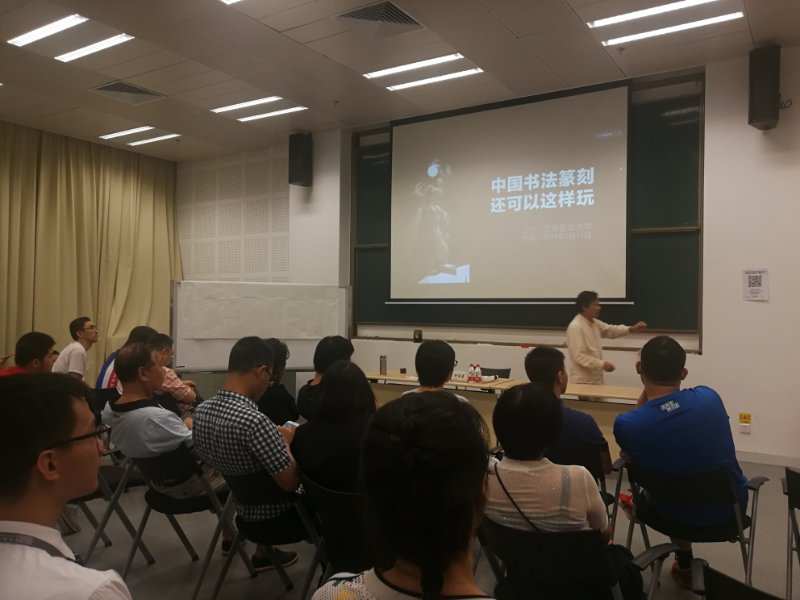 著名書(shū)法篆刻家鐘國(guó)康在講座現(xiàn)場(chǎng)演示篆刻的方法