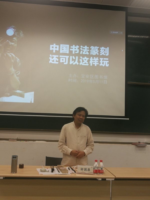 深圳新聞網(wǎng)5月11日訊(通訊員 孫善文)書(shū)法篆刻是優(yōu)秀的傳統(tǒng)文化,蘊(yùn)含了中華千年文化的精粹。上午,著名書(shū)法篆刻家鐘國(guó)康在寶安圖書(shū)館舉辦專(zhuān)題講座,向到場(chǎng)的書(shū)法、篆刻愛(ài)好者分享了自己五十年來(lái)的書(shū)法、篆刻心得和經(jīng)驗(yàn),給大家?guī)?lái)了一場(chǎng)有思想、有內(nèi)容、有美感的藝術(shù)盛宴,在場(chǎng)人員無(wú)不受益良多。