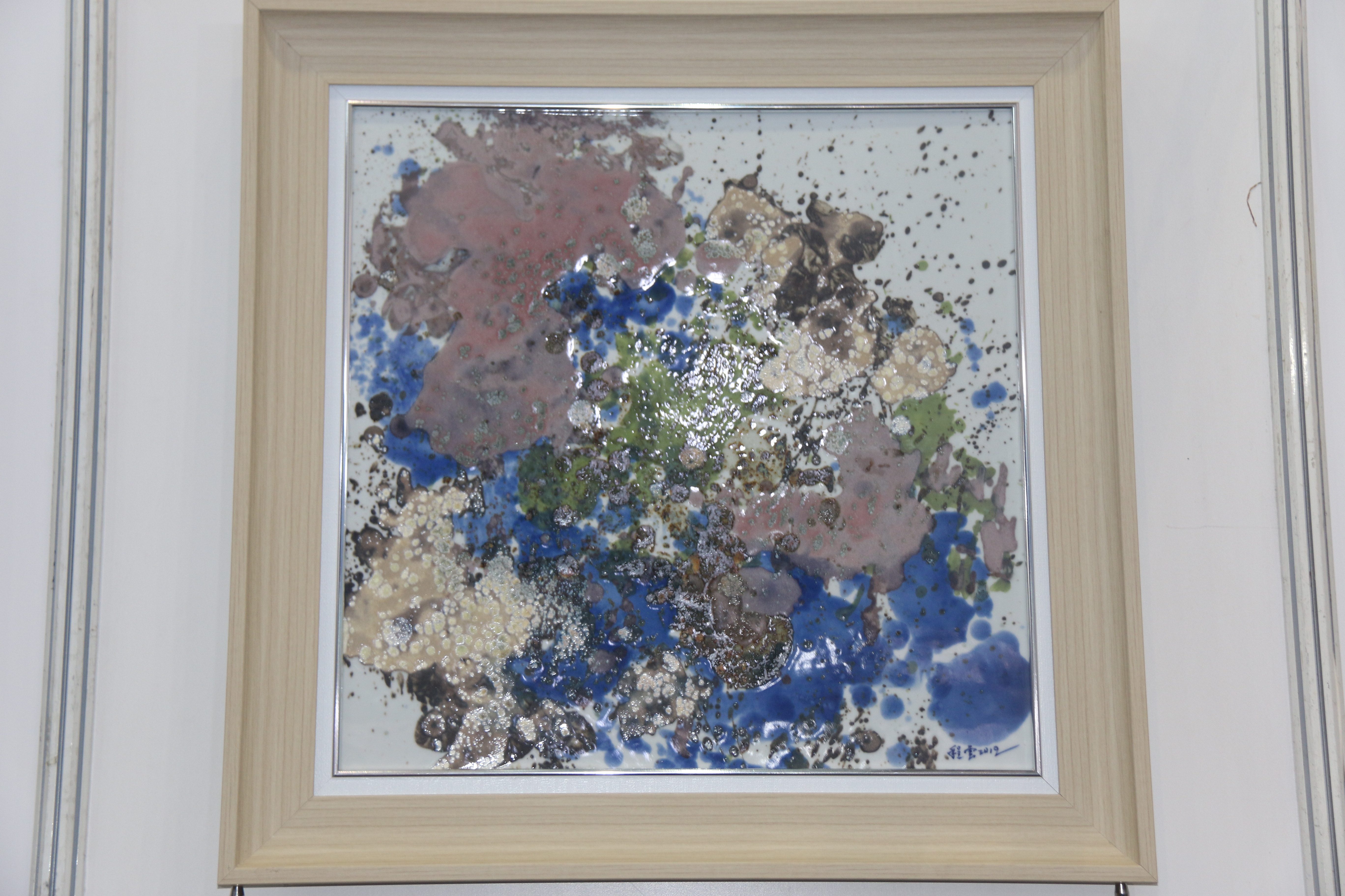 除卻傳統(tǒng)的燒制工藝的不同外,現(xiàn)在的瓷板畫還在傳統(tǒng)藝術(shù)畫法方面吸收借鑒了西方繪畫技藝,尤其是西方印象畫法以及后現(xiàn)代作品對現(xiàn)在的藝術(shù)創(chuàng)作有著深遠的影響。程云教授表示“我們這個新時代中國藝術(shù)就是要在東方文化為主體的情況之下,能夠包容吸收一些西方藝術(shù)元素及繪畫技藝。像高溫顏色釉作品,就是吸收了印象畫派對色彩以及光的理解,然后再配以點、線、面的不同組合最終構(gòu)成一幅畫作。雖然板畫采用了西方的繪畫技藝以及審美理念,但是它所表達的還是中國“天人合一”的思想,它更多的是代表當(dāng)代的一種藝術(shù)追求以及審美?!?/p>