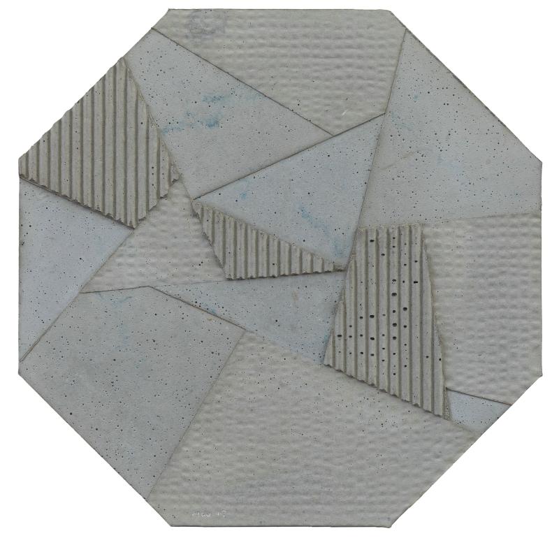 自2013年王豪開始以水泥作為個人創(chuàng)作媒介以來,三個系列“寂”、“樸”、“遠”并行展開。“寂”和“樸”強調(diào)水泥作品的靜態(tài)特征,不論是單件作品還是多件組合作品,在水泥材料的細微變化與色塊搭配上,力求傳達出一種寧靜、樸拙的整體氣息;“樸”系列在形式上更為豐富,不僅嘗試使用斜線、三角形乃至圓形,還探索富于中國古典韻味的形式表達(例如對中國古代手卷的模擬);“遠”系列的名稱則來源于中國傳統(tǒng)山水繪畫所特有的透視技法“三遠”概念,這系列作品意圖通過畫面的動態(tài)表現(xiàn)打破二維空間限定,拓展平面繪畫的深度與廣度,從美學(xué)意境上與高遠、深遠、平遠相融合。