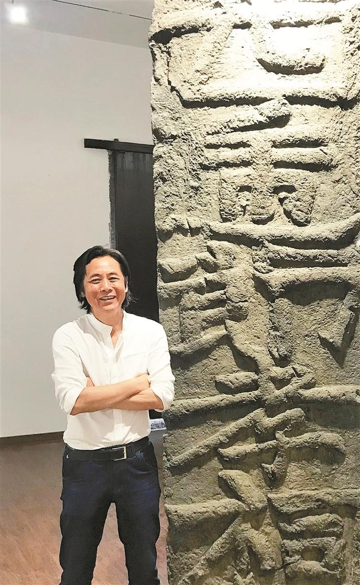 其中,矗立在展場中的大型裝置《磚魂》就是我基于對消失隕落文化的痛惜而創(chuàng)作的。上個世紀(jì)90年代,西遞村的一位老者贈與的古建殘磚,據(jù)考證這是最后一塊刻有“西遞節(jié)孝祠”字樣的古磚?!洞u魂》是對這塊古磚復(fù)制并放大而成的作品,其材料是我在蕪湖古城廢墟揀的無數(shù)清代磚頭。我用箱子把它們運到深圳,在深圳的工業(yè)園區(qū),用壓路機把它壓成粉末。在我看來,碾成粉末的不僅是建筑的骨灰,還有我的童年,幾代人的生活記憶,拆掉的不止是廢墟,更是一方古老的文化傳統(tǒng)。最后磚粉混合著泥土豎起一個重600公斤,高3.2米的大磚頭,我命名為《磚魂》。