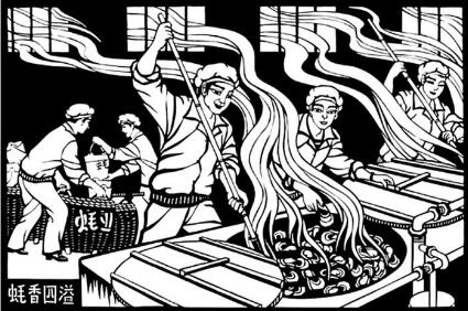 饒凱玉從來(lái)沒(méi)學(xué)過(guò)國(guó)畫(huà),也沒(méi)接受過(guò)正規(guī)的美術(shù)教學(xué)。在集訓(xùn)一個(gè)月期間,老師給她一本書(shū),建議她向國(guó)畫(huà)發(fā)展。她發(fā)現(xiàn)書(shū)里有幾幅小剪紙圖很有趣,突然勾起她的創(chuàng)作靈感,為什么不畫(huà)農(nóng)村題材呢?她決定創(chuàng)作農(nóng)村“四員”(出納、會(huì)計(jì)、保管、記工員),“四員”是當(dāng)時(shí)典型的社會(huì)人物?!拔也灰?huà)國(guó)畫(huà),要刻紙成畫(huà)。”饒凱玉說(shuō)。當(dāng)時(shí),她先用毛筆在紙上勾勒出形象,修改定稿,后用印寫(xiě)紙反轉(zhuǎn)復(fù)印在刻紙上,再用刀刻紙成畫(huà)。