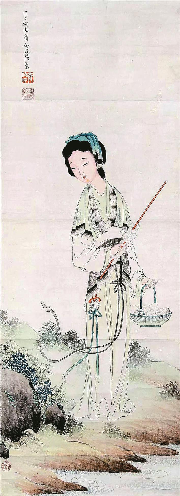 齊白石《西施浣紗圖》紙本設色首都博物館藏