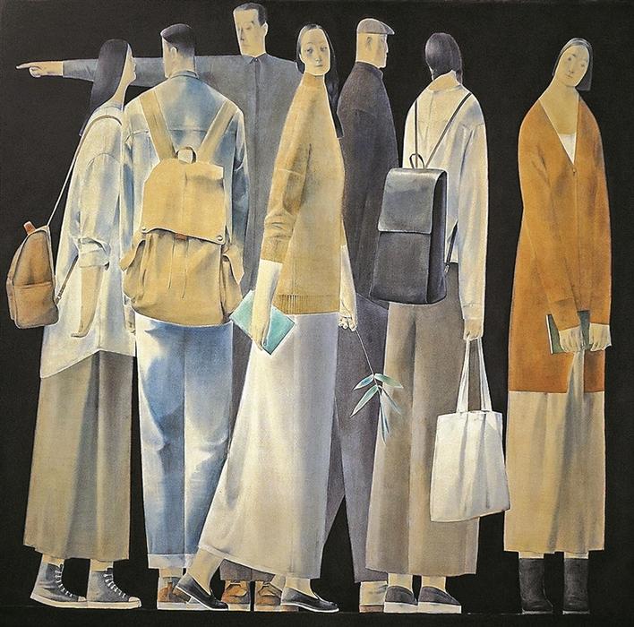 梁國輝的《新生》體現(xiàn)出一種新的圖像構(gòu)建的可能性,塑造出的人物形象具有生動的情感和鮮明的個性;涂蓉蓉的《鏗鏘之音》以抽象的表現(xiàn)方式讓我們感到“無形”和“有形”之間的微妙關(guān)系;王彪的《收工之八十六》展現(xiàn)其寫實功底,并致力于探索如何用更加多元的藝術(shù)語言來表達自己的感受。