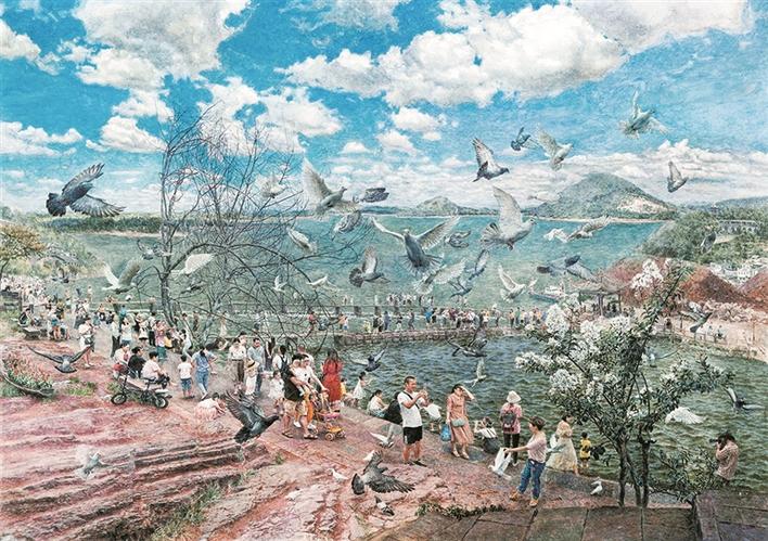 頡元芳的《遠(yuǎn)方》表現(xiàn)了內(nèi)蒙古西北草原民族的人文情感和真實的生活狀態(tài);向園的《夏風(fēng)》運用浪漫主義和象征主義的創(chuàng)作手法,讓我們回到一種自然、安寧、和諧的畫境之中;奚忠恕的《天路》,讓我們直面感受到面對“最美奮斗者”,用畫筆為他們點贊;吳登軍的《遺失的世界系列——三十六》呈現(xiàn)了他對環(huán)境問題的思考。