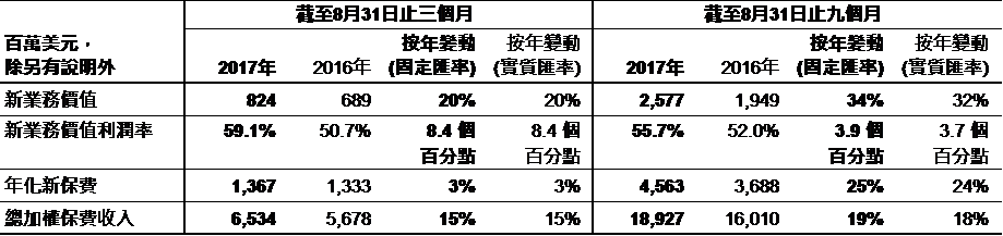 友邦保險(xiǎn)三季度主要財(cái)務(wù)概要