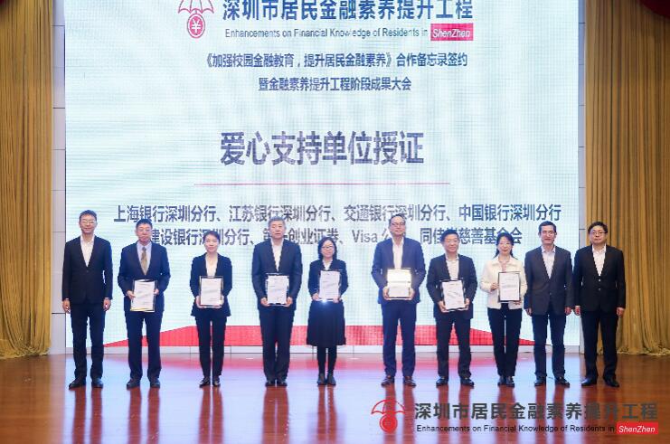 在隨后的授證儀式中,上海銀行深圳分行因對深圳市居民金融素養(yǎng)提升工程做出的突出貢獻,及推動深圳金融安全建設與可持續(xù)發(fā)展,被授予了“愛心支持單位”榮譽稱號。