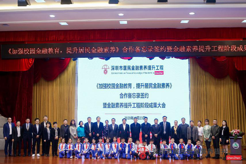深圳新聞網·見圳客戶端2020年12月28日訊 近日,由中國人民銀行深圳市中心支行、深圳銀保監(jiān)局、深圳證監(jiān)局、深圳市地方金融監(jiān)督管理局、深圳證券交易所、深圳市教育局、福田區(qū)人民政府主辦,深圳市民政局協(xié)辦的《加強校園金融教育,提升居民金融素養(yǎng)》合作備忘錄簽約暨金融素養(yǎng)提升工程階段成果大會在福田實驗僑香學校舉行。深圳市政府、相關機構領導,市各金融機構代表、市區(qū)中小學校領導、街道社區(qū)負責人以及僑香學校的師生們等逾200人出席了大會。