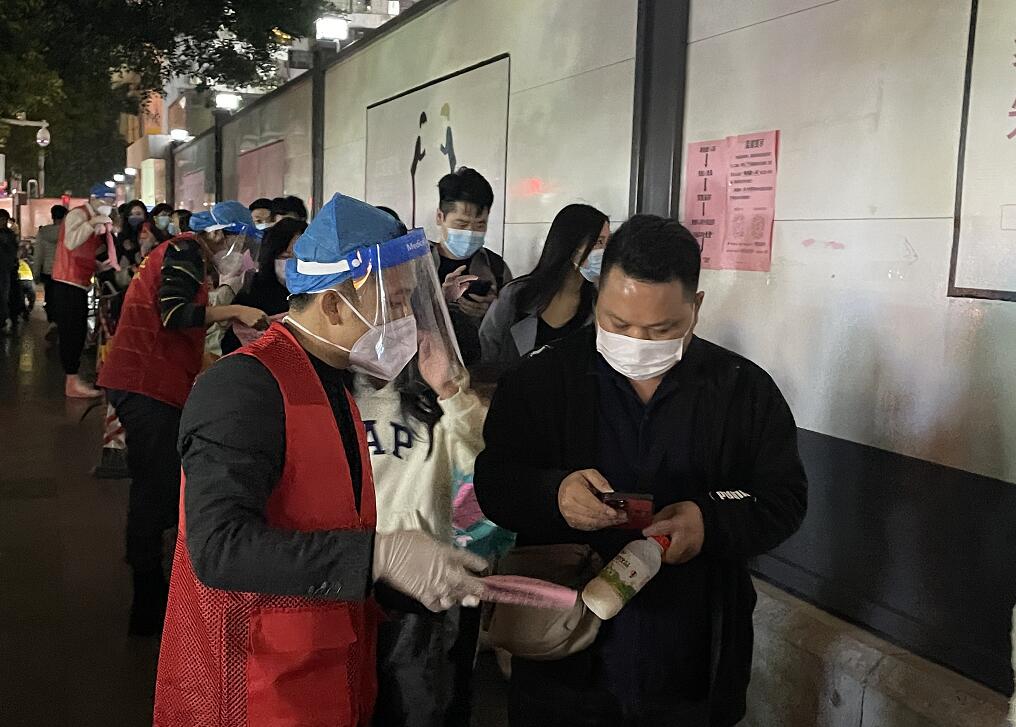 2月18日,青年志愿者們顧不上吃晚飯,一下班就奔赴南園社區(qū)核酸篩查檢測點(diǎn),與南園社區(qū)的志愿者們一起投入到維護(hù)核酸采集秩序的隊(duì)伍中,一直服務(wù)到深夜。