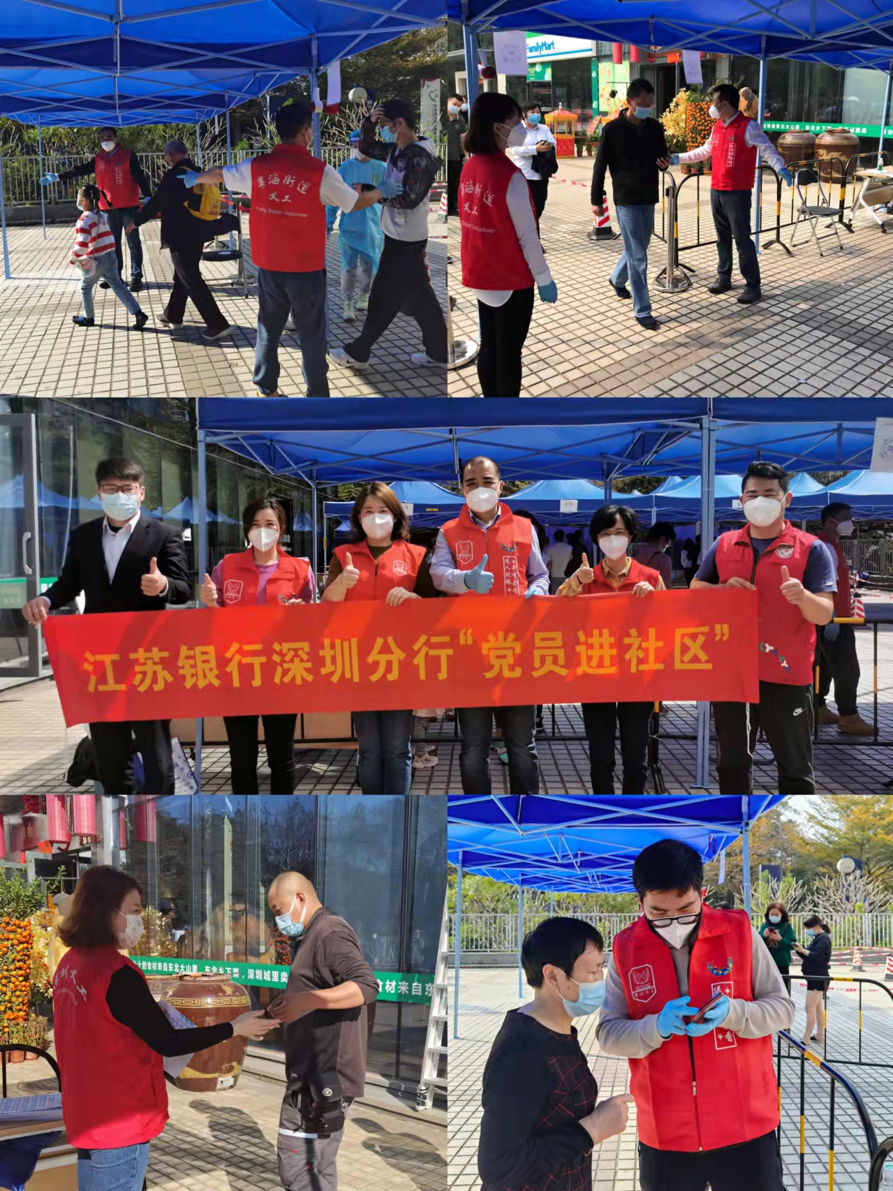 在該行黨委統(tǒng)一部署及有效組織下,江蘇銀行深圳分行營業(yè)部、福田支行、南山支行、前海支行等基層黨組織快速響應(yīng),立即組建起由黨支部書記、支行行長帶頭的志愿先鋒隊。2月中旬起,江蘇銀行深圳分行志愿先鋒隊忙碌在福田海濱社區(qū)、南山蔚藍(lán)海岸社區(qū)、高新區(qū)社區(qū)等多個核酸檢測點,在核酸采樣現(xiàn)場提醒民眾查驗健康碼、協(xié)助秩序維護(hù)、做好防疫宣傳、協(xié)助搬運(yùn)物資、進(jìn)行核酸引導(dǎo)、解答防疫問題。與社區(qū)醫(yī)護(hù)人員一起奮斗在抗疫第一線,用行動踐行初心,用汗水書寫擔(dān)當(dāng),用責(zé)任與堅守共筑抗疫“紅色防線”。