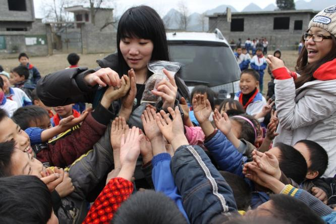 “我始終記得第一次去織金的情景。當時,我們從貴陽出發(fā),走了5個小時的盤山公路,2個小時坑坑洼洼的盤山小路才到。難以忘記的是破敗的教室里孩子們黝黑冰冷的小手,鼻子上掛著的兩條‘小蟲’,透著冬日寒風的衣服上的破洞。他們半倚在簡陋的桌椅邊直打哆嗦,卻依然因為我們的到來綻放著暖陽般的笑臉?!痹瓘V發(fā)銀行深圳分行副行長駱向東回憶起考察邊遠村小時的情景,至今仍心疼不已。