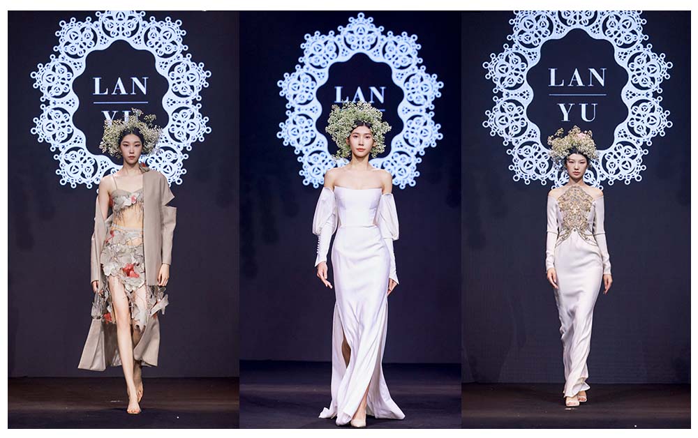 現(xiàn)場更有LANYU高定禮服展示,將中式美學(xué)意境與西式時尚剪裁完美融合,同時加重了蘇繡非遺元素的應(yīng)用比例,將更多的非遺技藝融入服飾創(chuàng)作中,呈現(xiàn)出超高藝術(shù)水準(zhǔn)。