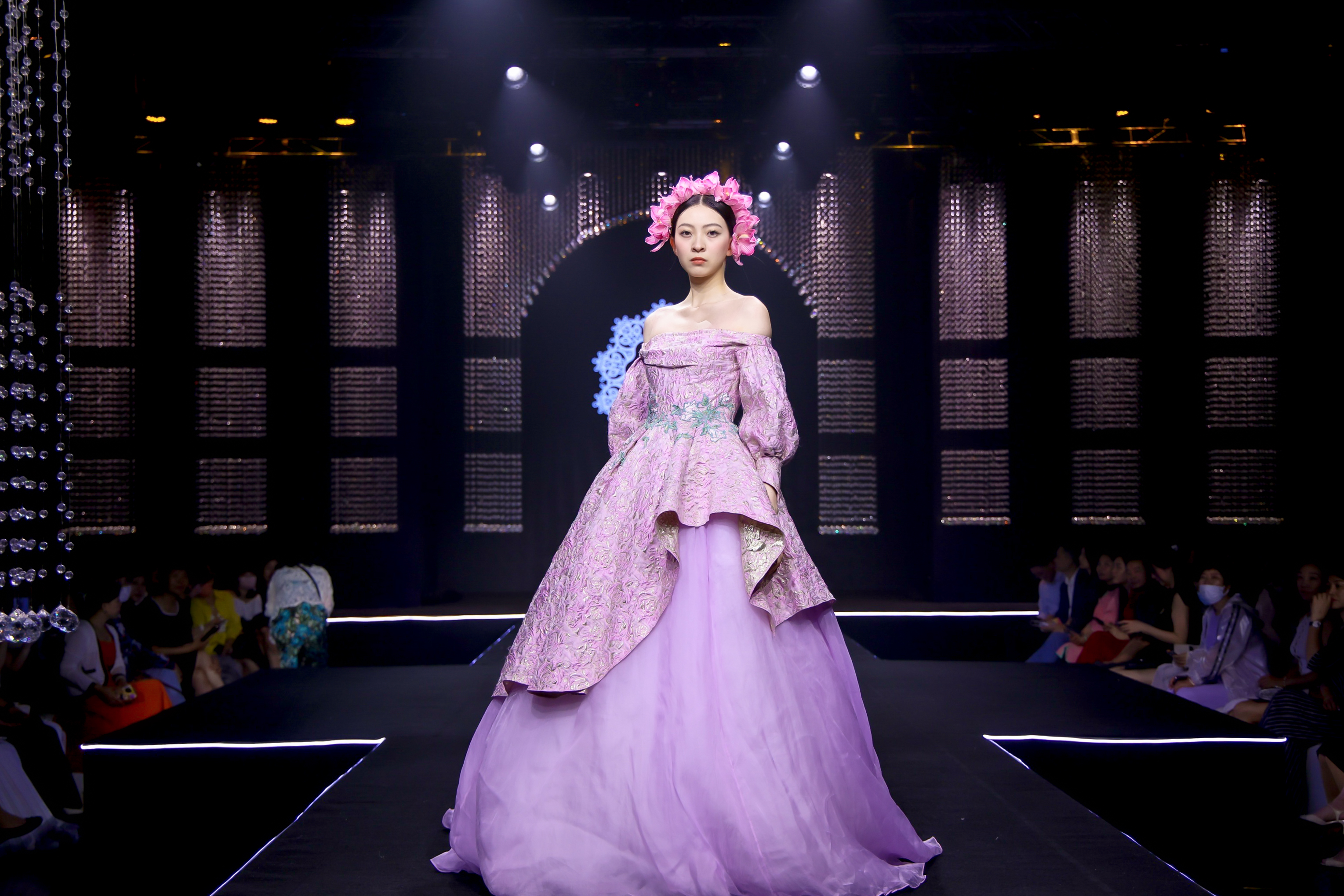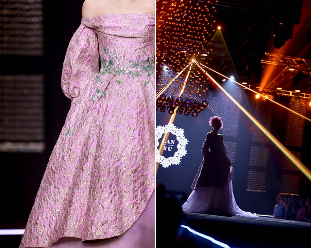 值得一提的是,LANYU品牌帶來了歷屆發(fā)布經(jīng)典系列中的代表作品,展出設(shè)計融合了蘇繡藝術(shù)的經(jīng)典手工技藝特色及現(xiàn)代時裝設(shè)計的新鮮潮流之美,綻放出了美輪美奐的視覺藝術(shù)效果,國風(fēng)文化與國際時尚撞了個滿懷,讓現(xiàn)場觀眾贊嘆不已。