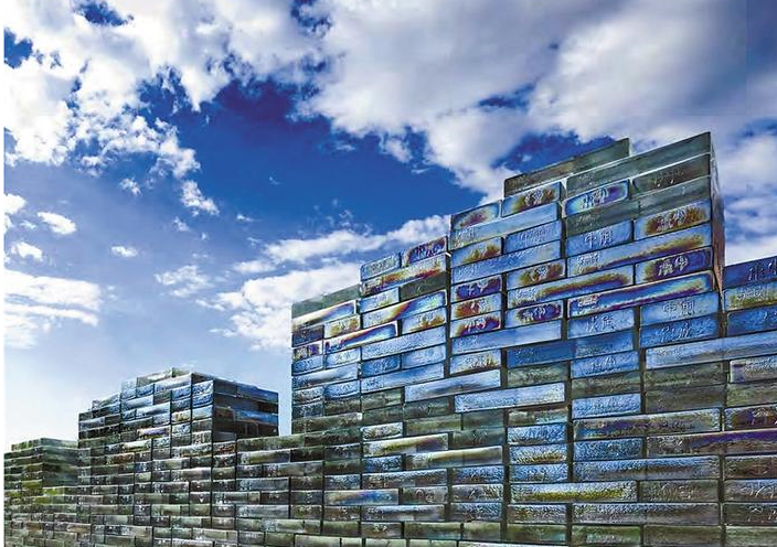 最具代表性的是盛姍姍受邀參加2009年第53屆威尼斯雙年展的作品《開放的長(zhǎng)城》,它長(zhǎng)約22米,由2200多塊玻璃磚組成,對(duì)應(yīng)中國(guó)長(zhǎng)城存世的2200多年歷史,通身透出七彩光芒;《文字演變》描述了象形文字從原始的狀態(tài)到當(dāng)代文字的演變;《舞動(dòng)的絲帶》則以中國(guó)當(dāng)代的絲帶舞為基礎(chǔ),形成色彩與絲帶交織的造型,而這種造型代表了泛文化在公共建筑內(nèi)的交融。此外,《生生不息的竹子》《華夏青銅時(shí)代系列》《算盤》等作品,都可以找到鮮明的中國(guó)傳統(tǒng)文化元素。