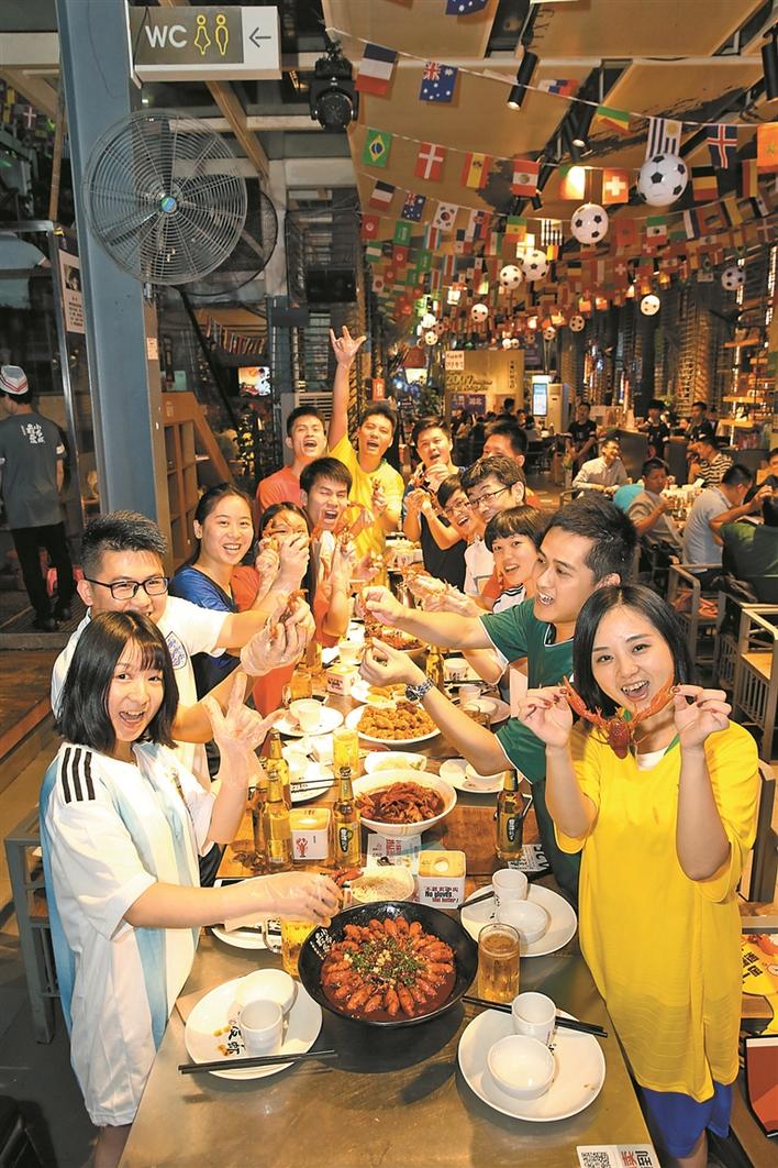 但這次世界杯期間,許女士找到了一個好去處:“看球其實不重要,重要的是大家聚在一起,但口味一定要找大家都能接受的,所以挑來挑去最后選擇了龍巢。”在昨晚的龍巢店內(nèi),一整盤的蛋黃味小龍蝦被許女士吃個精光:“這是吃得最暢快的一次,整個氛圍也很到位,接下來的比賽就扎根在這里了。”