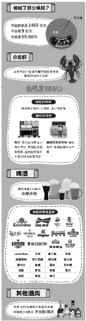 據(jù)了解,在世界杯足球賽開賽前夕,深圳市食藥監(jiān)局就通過網(wǎng)絡(luò)調(diào)查活動對市民票選出的熱門宵夜食品進(jìn)行了抽檢,包括燒烤類食品、啤酒、小龍蝦、零食炒貨堅果制品、膨化食品、醬鹵肉制品,同時對備受球迷歡迎的酒吧等場所售賣的酒類產(chǎn)品進(jìn)行抽檢。行動共抽檢樣品1465批次,發(fā)現(xiàn)不合格樣品5批次,合格率達(dá)99.66%。