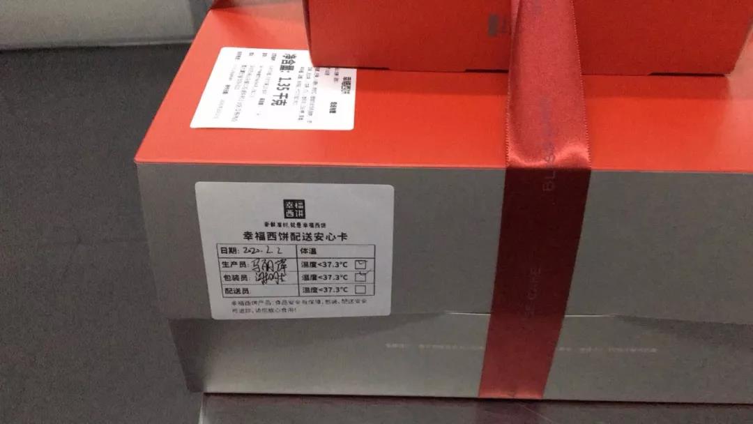 “你們安全,我們安心”,幸福西餅正逐步采取“無接觸配送”的措施并使用配送安心卡。用戶下單后,可通過訂單備注或電話溝通等方式,與配送員協(xié)商將產(chǎn)品放置在指定位置,且配送員需與用戶保持一定距離,降低感染風(fēng)險(xiǎn)。