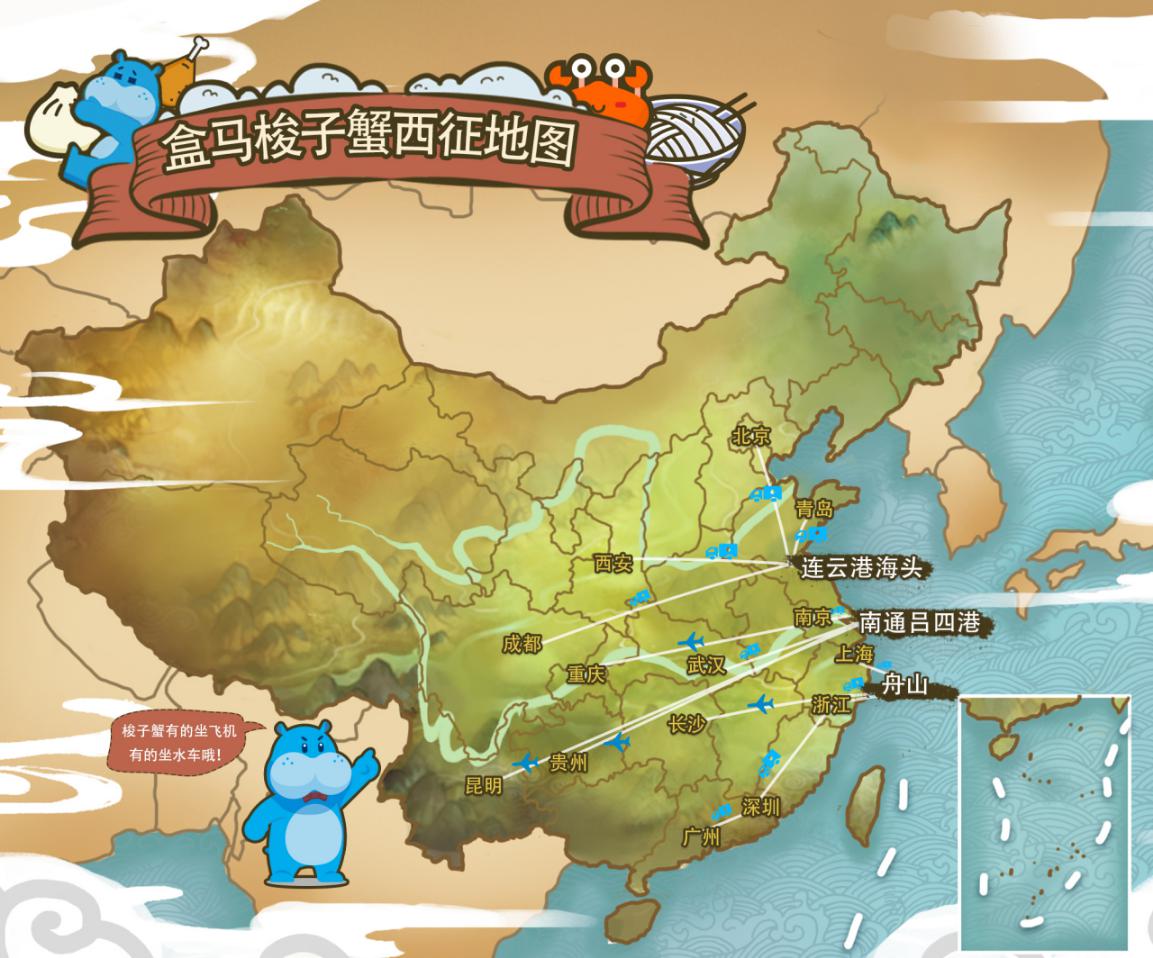 除了浙江舟山,盒馬還在在江蘇呂四、連云港分別設立了直采基地和純海水恒溫暫養(yǎng)倉,每個暫養(yǎng)倉可以容納5萬斤的梭子蟹和皮皮蝦,可以滿足2 -3天的海鮮供應量,并根據空間距離、物流干線等因素,來調撥供應近20個城市的門店,提升海鮮的鮮活度。