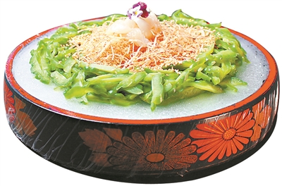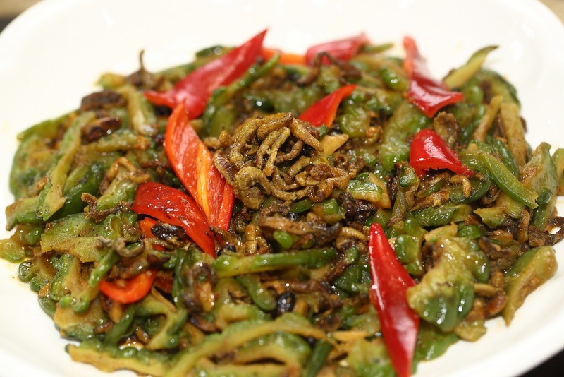 急凍后的禾蟲再解凍,隔水蒸熟,下鍋里炒,加入時(shí)令杜遠(yuǎn)涼瓜、紅糖和豆豉共炒,炒到禾蟲干身,甘香即脫出,這是“涼瓜炒禾蟲”。
