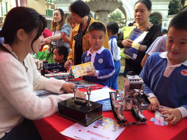 活動現(xiàn)場,不少市民的目光被愛匯百變教育科技有限公司的EV3編程機器人所吸引。EV3編程機器人高爾夫、EV3編程機器人幸運大轉(zhuǎn)盤、EV3編程機器人障礙大闖關(guān)、電磁感應(yīng)千人震等系列體驗活動新奇好玩,讓市民近距離了解機器人圖形化編程原理,收獲了LEGO仿真機械結(jié)構(gòu)及圖形化編程、電動發(fā)電、電磁感應(yīng)、電路等科普知識。