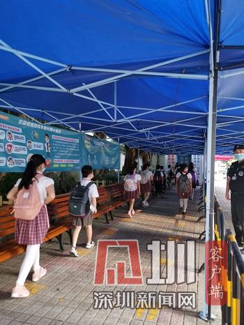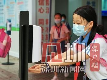 我起了個(gè)大早,高高興興地來(lái)到學(xué)校。在校門(mén)口不遠(yuǎn)處,我看見(jiàn)一排排金色小腳印在望著我笑,好像在對(duì)我說(shuō):“歡迎你返校!”進(jìn)入校園后,熟悉的林蔭道下多了許多的大帳篷,帳篷中間有一個(gè)巨大的測(cè)溫箱。走過(guò)測(cè)溫箱,一排感應(yīng)免洗洗手液站得筆直,正在招呼我們趕緊洗手消毒。因?yàn)樾鹿谝咔?,我們的校園不一樣了,多了許多守護(hù)我們健康的安全小衛(wèi)士。