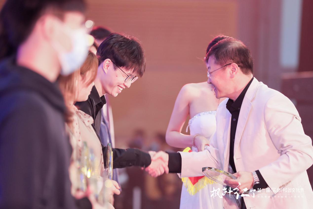 另據(jù)了解,本屆活動不以競賽為目的,不設(shè)專業(yè)評委,不設(shè)專業(yè)分?jǐn)?shù),不設(shè)獎牌等級,而是以鼓勵學(xué)生全面發(fā)展、校園文化交流為初心,由觀眾們自發(fā)投票評選出魅力社團(tuán)獎、優(yōu)秀指導(dǎo)老師獎、鯤鵬獎、綻放獎、最具人氣獎。記者從現(xiàn)場了解到,獲得本屆魅力社團(tuán)獎的學(xué)校有10所,分別是:深圳市南山區(qū)文理實驗學(xué)校(集團(tuán))《模擬聯(lián)合國社》、南山區(qū)前海學(xué)校《棒球隊》、深圳實驗學(xué)校高中部《回聲合唱團(tuán)》、深圳高級中學(xué)(集團(tuán))中心校區(qū)《深高學(xué)生戲劇團(tuán)》、深圳市楓葉學(xué)校《英語戲劇社》、深圳市龍華中學(xué)《跆拳道空手》、深圳市蛇口育才教育(集團(tuán))育才中學(xué) 《404樂隊》、深圳市育新學(xué)校 《The best軍樂團(tuán)》、南方科技大學(xué)附屬中學(xué)《機(jī)器人隊》、深圳市藝術(shù)高中《鐘呂交響管樂團(tuán)》;獲得本屆校園文化節(jié)鯤鵬獎(唯一)的學(xué)校是:南方科技大學(xué)附屬中學(xué);獲得本屆校園文化節(jié)綻放獎的是9所學(xué)校,分別是:深圳市第一職業(yè)技術(shù)學(xué)校、深圳中學(xué)、深圳市藝術(shù)高中、深圳市寶安中學(xué)(集團(tuán))、深圳市第三職業(yè)技術(shù)學(xué)校、深圳市楓葉學(xué)校、深圳市龍崗區(qū)龍城高級中學(xué)、寶安區(qū)為明雙語實驗學(xué)校、深圳市蛇口育才教育(集團(tuán))育才中學(xué);獲得現(xiàn)場最具人氣獎的學(xué)校有10所,分別是:深圳市第一職業(yè)技術(shù)學(xué)校、深圳市福田區(qū)華強(qiáng)職業(yè)技術(shù)學(xué)校、深圳市第三職業(yè)技術(shù)學(xué)校、深圳大學(xué)附屬中學(xué)、紅嶺中學(xué)(集團(tuán))石廈初中部、龍崗區(qū)蘭著學(xué)校、萬科梅沙書院、深圳市南山區(qū)文理實驗學(xué)校(集團(tuán))、筍崗中學(xué)、寶安中學(xué)(集團(tuán));最后同時獲得本屆校園文化節(jié)優(yōu)秀指導(dǎo)老師獎的學(xué)校分別來自:南方科技大學(xué)附屬中學(xué)、深圳市第一職業(yè)技術(shù)學(xué)校、深圳中學(xué)、深圳市蛇口育才教育(集團(tuán))育才中學(xué)、深圳市寶安中學(xué)(集團(tuán))、深圳市第三職業(yè)技術(shù)學(xué)校、深圳市藝術(shù)高中、深圳市楓葉學(xué)校、寶安區(qū)為明雙語實驗學(xué)校、深圳市龍崗區(qū)龍城高級中學(xué)。