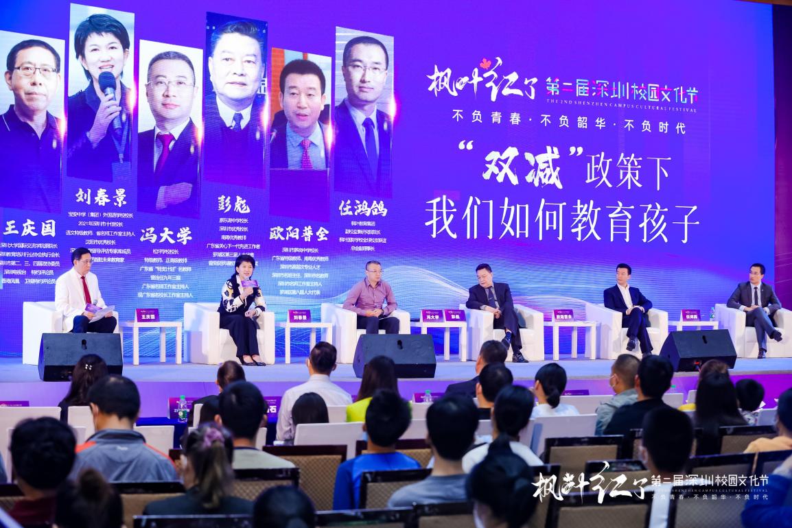 下午,現(xiàn)場舉行“雙減政策,該如何教育我們的孩子”專家論壇,深圳大學(xué)國際交流學(xué)院原院長王慶國、羅湖區(qū)第三屆人大代表彭彪、寶安中學(xué)(集團(tuán))外國語學(xué)校校長劉春景、松坪學(xué)校校長馮大學(xué)、筍崗中學(xué)校長歐陽普全、楓葉教育集團(tuán)副校監(jiān)兼研究院院長任鴻鴿等六位嘉賓出席本屆論壇。圍繞雙減政策下,如何教育孩子?進(jìn)行深層次的探討,分享各自的觀點與建議,為廣大學(xué)生與家長解疑答惑。