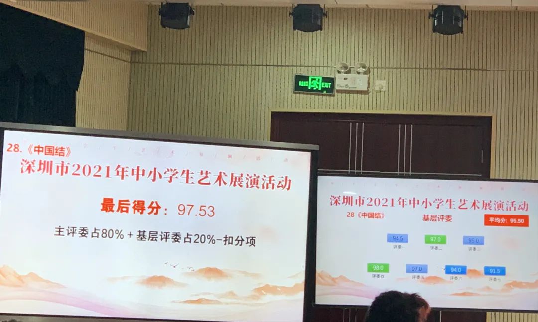 二實青春舞蹈團以原創(chuàng)作品《中國結(jié)》在全市各區(qū)以及市直屬學(xué)校選拔出來的37個節(jié)目中脫穎而出,獲得全場最高分!接下來,青春舞蹈團將代表深圳市參加省賽,有望沖擊全國決賽!此外,二實花語合唱團也憑借大合唱《啟程》《春天來了》榮獲深圳市2021年中小學(xué)藝術(shù)展演(聲樂)中學(xué)甲組一等獎。劉斯丹、袁丁、徐裊、張日丹等老師榮獲優(yōu)秀指導(dǎo)老師獎。
