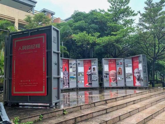 讀特客戶端·深圳新聞網(wǎng)2021年12月24日訊 近日,在寶安區(qū)的華一實(shí)驗(yàn)學(xué)校的操場上,多出了八個(gè)很酷的銀色大盒子?!斑@就是聶衛(wèi)平最有名的棋局??!”“沒想到魯迅不僅是文學(xué)家,還是設(shè)計(jì)師!”“這些錘子都是出土文物嗎?”好奇的同學(xué)們圍著盒子熱烈地討論起來。這些盒子可不是簡單的裝飾物,而是一場由國家藝術(shù)基金支持、中國美術(shù)學(xué)院和深圳市教育科學(xué)研究院聯(lián)合主辦的“經(jīng)典藝術(shù)進(jìn)校園”展覽活動(dòng)的中的展柜。