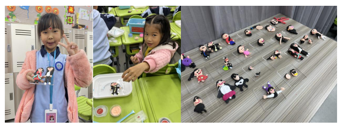 翌日,老師們再次來到華一校園,為小學(xué)部104班的學(xué)生們帶來了一場以“給老師塑像”為主題的泥塑體驗(yàn)課。課堂中,老師先是一步步引導(dǎo)孩子該如何觀察他們的模特,后又鼓勵(lì)他們大膽動(dòng)手,釋放自己的想象力和創(chuàng)造力。孩子們也都“各顯神通”,用自己獨(dú)特的方式去表現(xiàn)他們眼中老師的形象。有的為老師做了蝴蝶結(jié),有的為老師帶上耳環(huán),有的給老師換衣服,有的給老師戴眼鏡,氣氛十分活躍。在課堂結(jié)束時(shí),大家都興奮地捧著自己的作品,與老師、同學(xué)們分享著創(chuàng)作的喜悅。