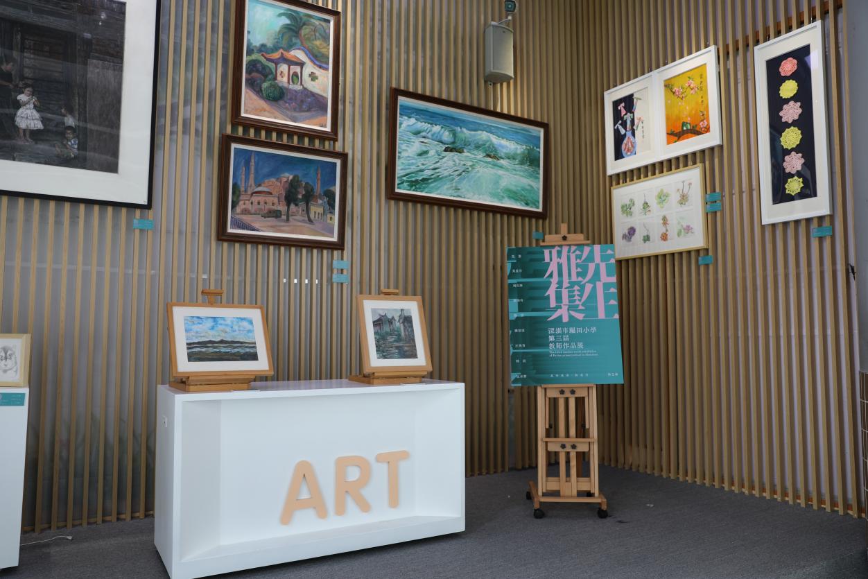 福田小學(xué)教師多才多藝,為了迎接新年在學(xué)校新建的榕美術(shù)館展出了各學(xué)科老師們的手工繪畫作品,這也是一個(gè)美的展示空間。
