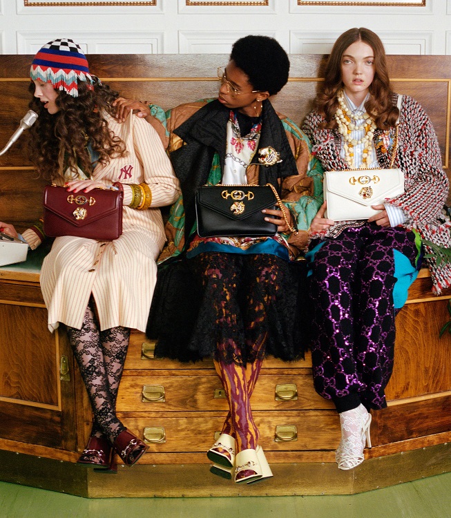 深圳新聞網(wǎng)訊 古馳于2018秋冬推出全新Rajah手袋系列,以裝飾風(fēng)格華麗的金屬虎頭配件,結(jié)合品牌標(biāo)志性多元美學(xué)風(fēng)格與經(jīng)典設(shè)計。