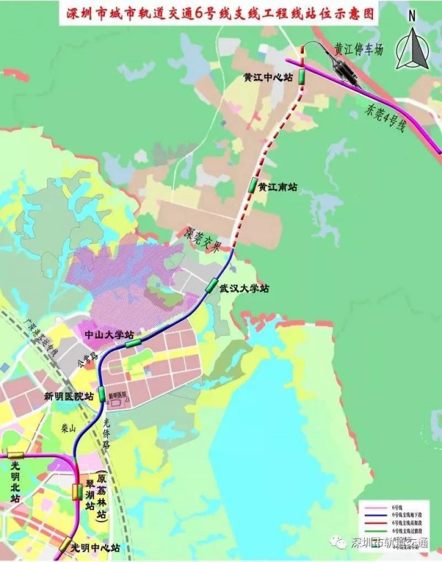 深圳地鐵6號線支線位于深圳市光明區(qū),起點設在6號線翠湖站東側(翠湖站為兩線換乘車站)、終點位于公常路深莞邊界,連接光明中心區(qū)和光明北區(qū)、中山大學,與規(guī)劃建設的東莞1號線南延線銜接,包括4站4區(qū)間:翠湖站(原荔林站)、新明醫(yī)院站、中山大學站、武漢大學站。