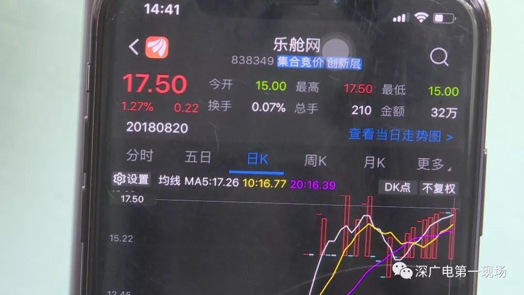 按照劉某的說法,張女士以每股15塊錢購得了3萬股原始股,并可以隨時(shí)回籠資金,今天記者登錄股票交易賬戶,查詢到張女士購入的這支“樂艙網(wǎng)”股票,此前一直走勢較低,在張女士買入當(dāng)天,股價(jià)才有了上漲。