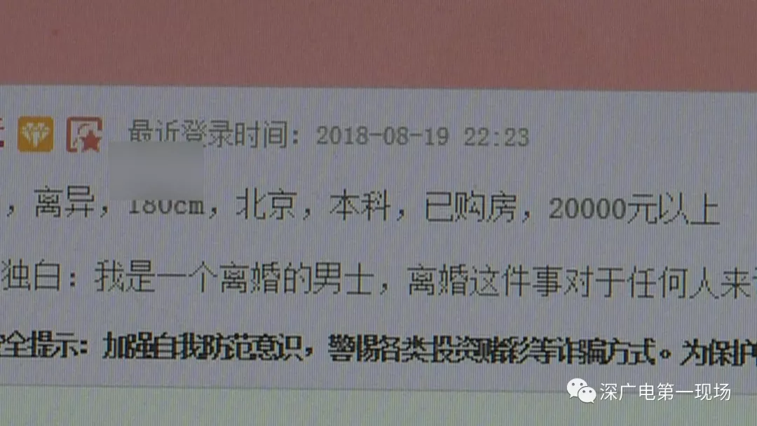 廖女士世紀(jì)佳緣網(wǎng)公關(guān)部工作人員:“他的資料只有20%的完整度,他并沒有上傳房產(chǎn)證,身份證等信息,我們也沒有辦法核實(shí)到?!?/p>