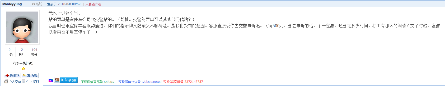 深圳新聞網(wǎng)8月29日訊(記者 施冰冰)“深圳的國(guó)資泊車(chē)位,對(duì)外地人來(lái)說(shuō)是個(gè)坑?!本W(wǎng)友wzmaodong在論壇上發(fā)帖吐槽深圳宜停車(chē)。該帖文主要描述了作者因?qū)ι钲诓窜?chē)規(guī)則了解不清,繼而被交警貼罰單的全過(guò)程,這讓出差在外的他感到“很冤”。同時(shí)也有幾位網(wǎng)友跟帖表示自己也交過(guò)這500元的“學(xué)費(fèi)”。(《深圳的國(guó)資泊車(chē)位,對(duì)外地人來(lái)說(shuō)就是個(gè)坑。在不知道深圳泊車(chē)規(guī)則的情況下,輕易的被交警貼罰單。》)