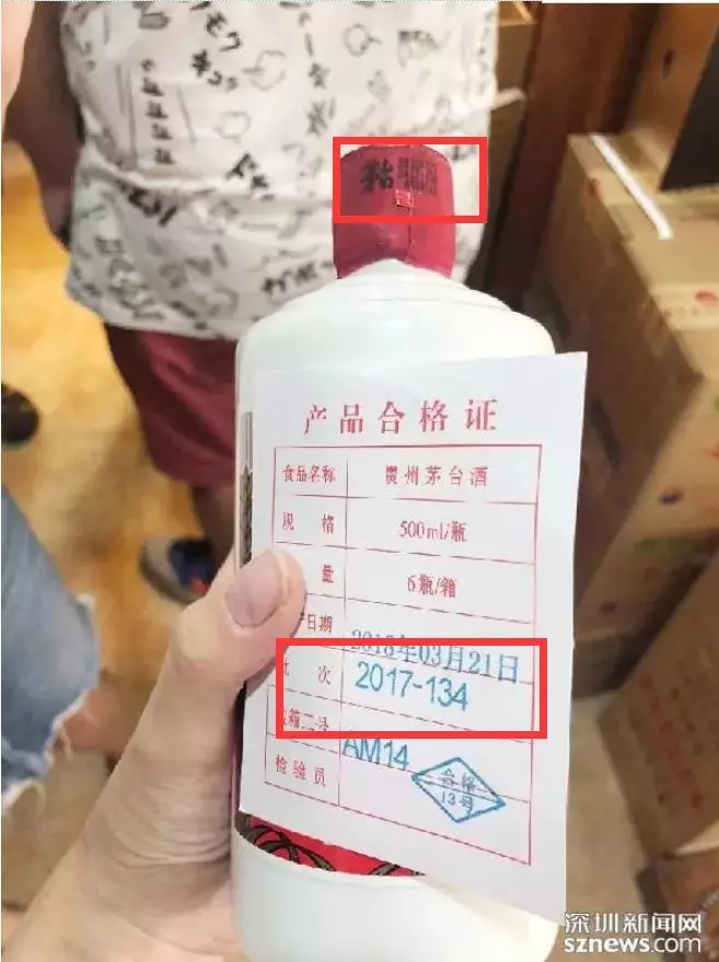 執(zhí)法人員支招,從以下方法入手:一般每箱茅臺(tái)都有對(duì)應(yīng)的產(chǎn)品合格證,合格證上有相關(guān)批次數(shù)字,如果合格證上的批次數(shù)字與茅臺(tái)開(kāi)口處所寫(xiě)的批次一樣的話,為真茅臺(tái)概率很高。如圖,合格證和茅臺(tái)瓶口的數(shù)字皆為2017-134,為真酒,市民可放心飲用。