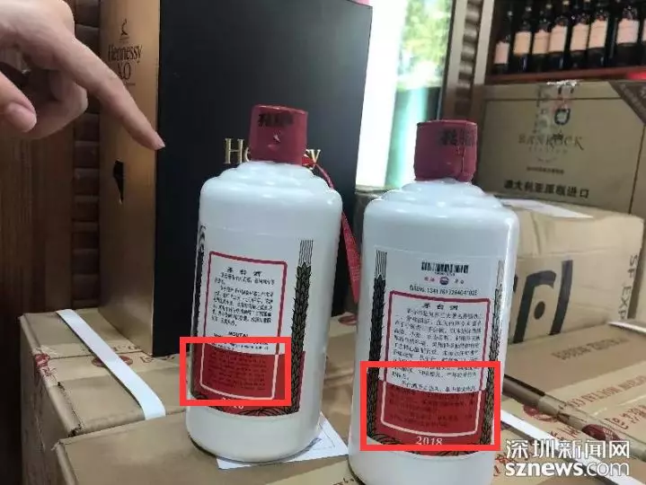左邊為出口版茅臺(tái),有中英文標(biāo)簽,執(zhí)法人員稱不允許在國(guó)內(nèi)流通,或涉嫌走私;右邊的只有中文標(biāo)簽的,為允許在國(guó)內(nèi)流通的茅臺(tái)酒。市民朋友們購(gòu)買(mǎi)茅臺(tái)時(shí)需留意。