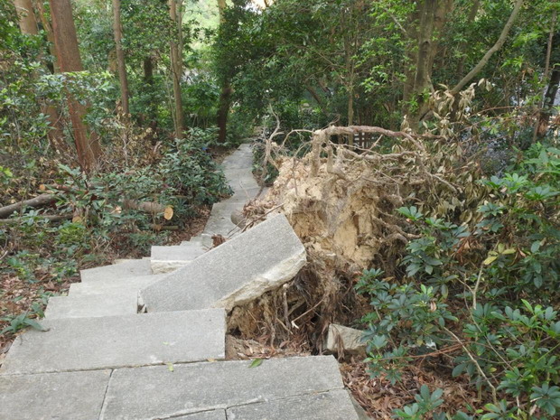 仙湖植物園內(nèi)被“山竹”吹倒的電線桿 圖片來自深圳論壇網(wǎng)友“szwtyh”攝