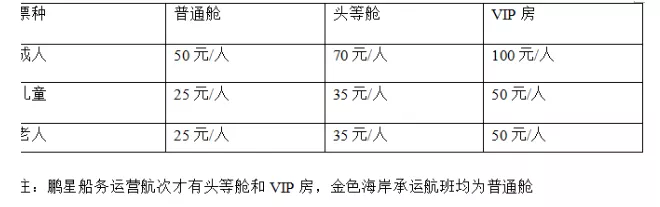 鹽田金色海岸碼頭至南澳雙擁碼頭公共交通航班時間及價目表