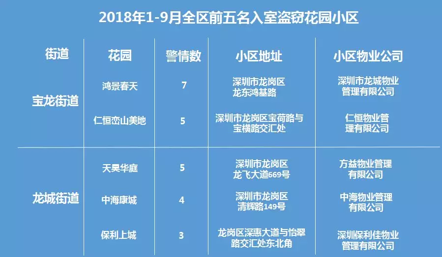 復(fù)盤今年龍崗區(qū)花園小區(qū)入室盜竊榜單