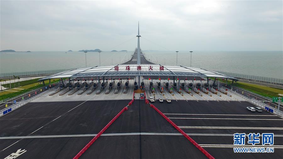 這是港珠澳大橋收費廣場(10月20日無人機拍攝)。 新華社記者吳魯攝