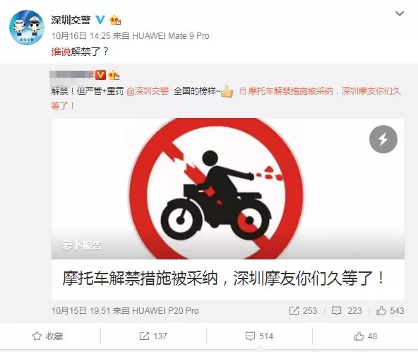 這才有了網(wǎng)傳的“深圳解禁摩托”一說