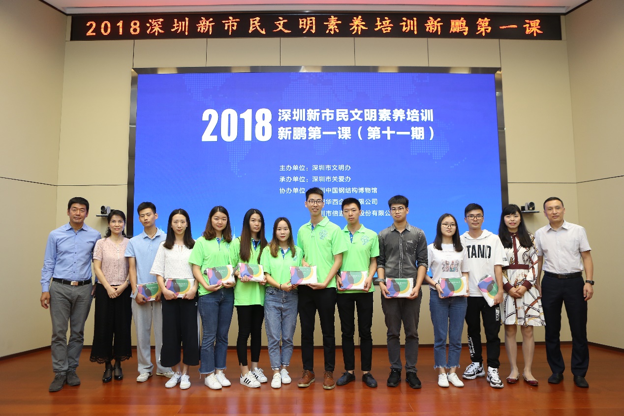 培訓(xùn)課上,上臺(tái)共同宣讀深圳新市民文明公約的環(huán)節(jié)讓十位新市民神情嚴(yán)肅而莊重,他們承諾將從自身做起,履行深圳市民應(yīng)盡的職責(zé)與義務(wù),赴深圳文明之約,成為文明深圳的踐行者與傳播者。深圳市關(guān)愛(ài)辦副主任華榮、中國(guó)著名登山探險(xiǎn)家張梁、中國(guó)華西企業(yè)有限公司黨群工作部部長(zhǎng)易佳、深圳中國(guó)鋼結(jié)構(gòu)博物館館長(zhǎng)張利峰為新市民代表送上一份詳盡的“深圳說(shuō)明書”——新版深圳福袋暨新版市民生活指南。