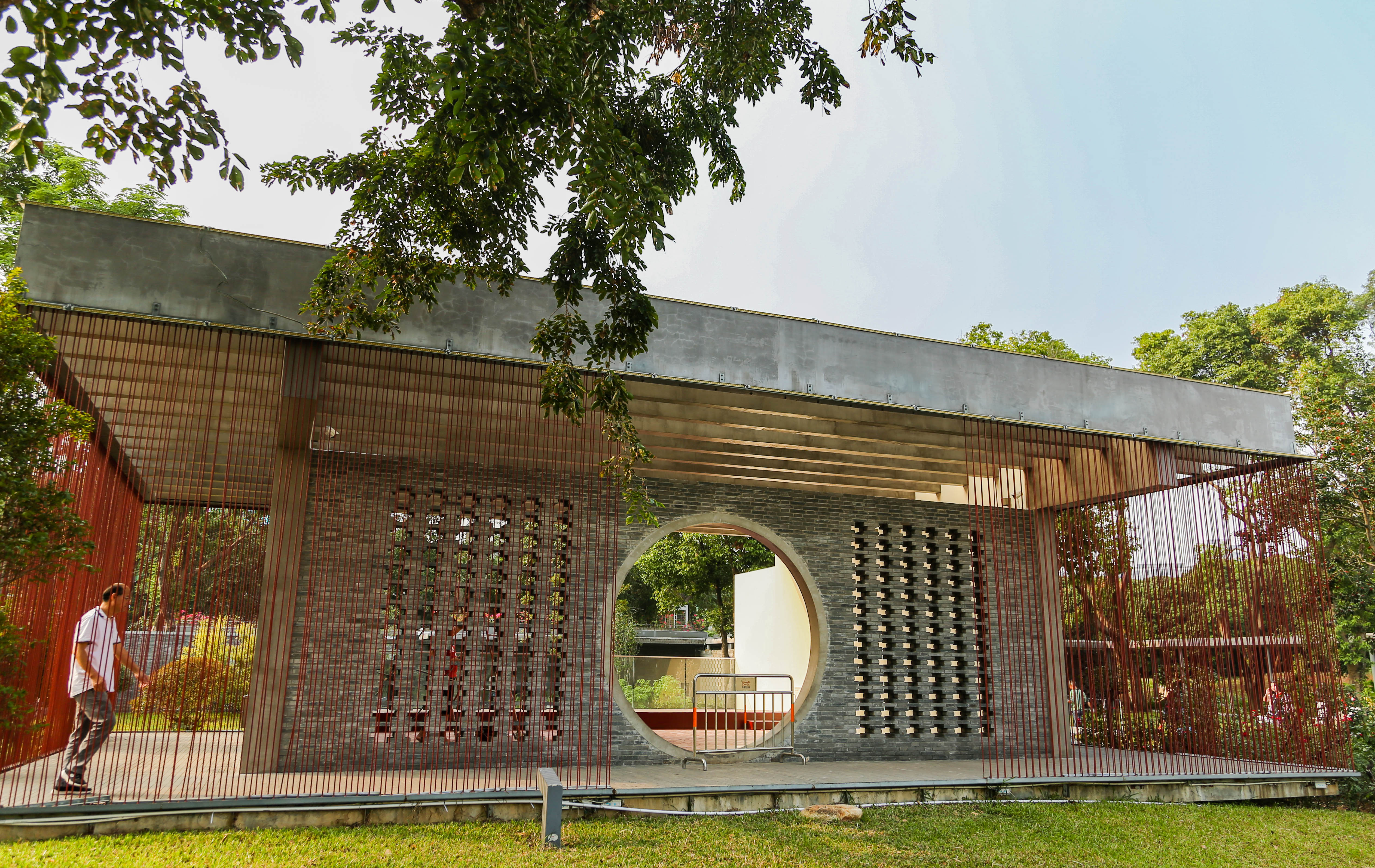 記者看到,目前西式婚禮堂和中式禮堂正在進(jìn)行最后的裝修和布置。西式禮堂潔白寧?kù)o,象征著純美的愛(ài)情。中式堂采用傳統(tǒng)的中軸對(duì)稱布局,軸線串聯(lián)內(nèi)院、建筑和湖面,外面拉了兩層紅色的鋼筋繩子,讓人聯(lián)想起“千里姻緣一線牽”。